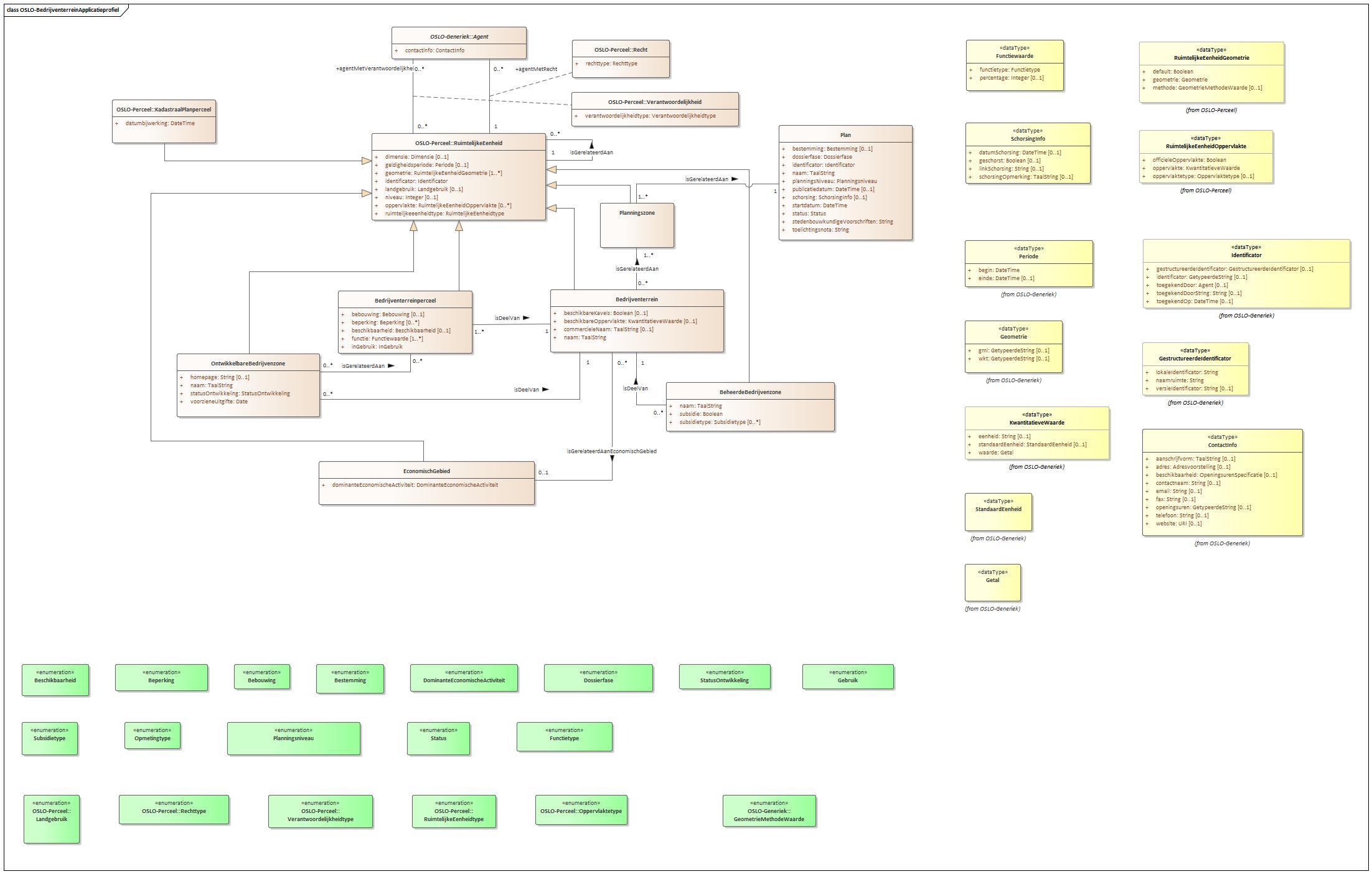 In Vlaanderen wordt er door Informatie Vlaanderen en de Algemene Administratie voor Patrimoniumdocumentatie (AAPD) gewerkt aan één authentieke bron voor perceelsinformatie (uniek percelenplan). Binnen deze bron wordt elk privaat/eigendoms- perceel in Vlaanderen uniek geïdentificeerd en gekenmerkt door een geometrische voorstelling, (bruikbaar in een schaalbereik van 1/250 – 1/5000 OF in lijn met de aanbevelingen in de INSPIRE dataspecificaties voor kadastrale percelen (link)). De AAPD vervult de rol van beheerder van deze bron en voert deze uit volgens de principes overeengekomen met Informatie Vlaanderen en gebruikers van perceelsinformatie in Vlaanderen. De gegevens in deze bron worden verspreid onder verschillende productvormen (Administratief perceel (ADP) in de Basiskaart Vlaanderen (GRB), kadastrale percelen (CaPa) in het kadastraal perceelsplan (CADGIS), …). Via dit initiatief wensen overheden in Vlaanderen in samenwerking met de Algemene Administratie voor Patrimoniumdocumentatie (AAPD) perceelsinformatie in Vlaanderen semantisch te modelleren. De resulterende standaard ‘percelen’ moet vlot kunnen worden hergebruikt door alle belanghebbenden. Dit is het applicatieprofiel van het OSLO traject Bedrijventerrein en beschrijft de relaties tussen de verschillende entiteiten.