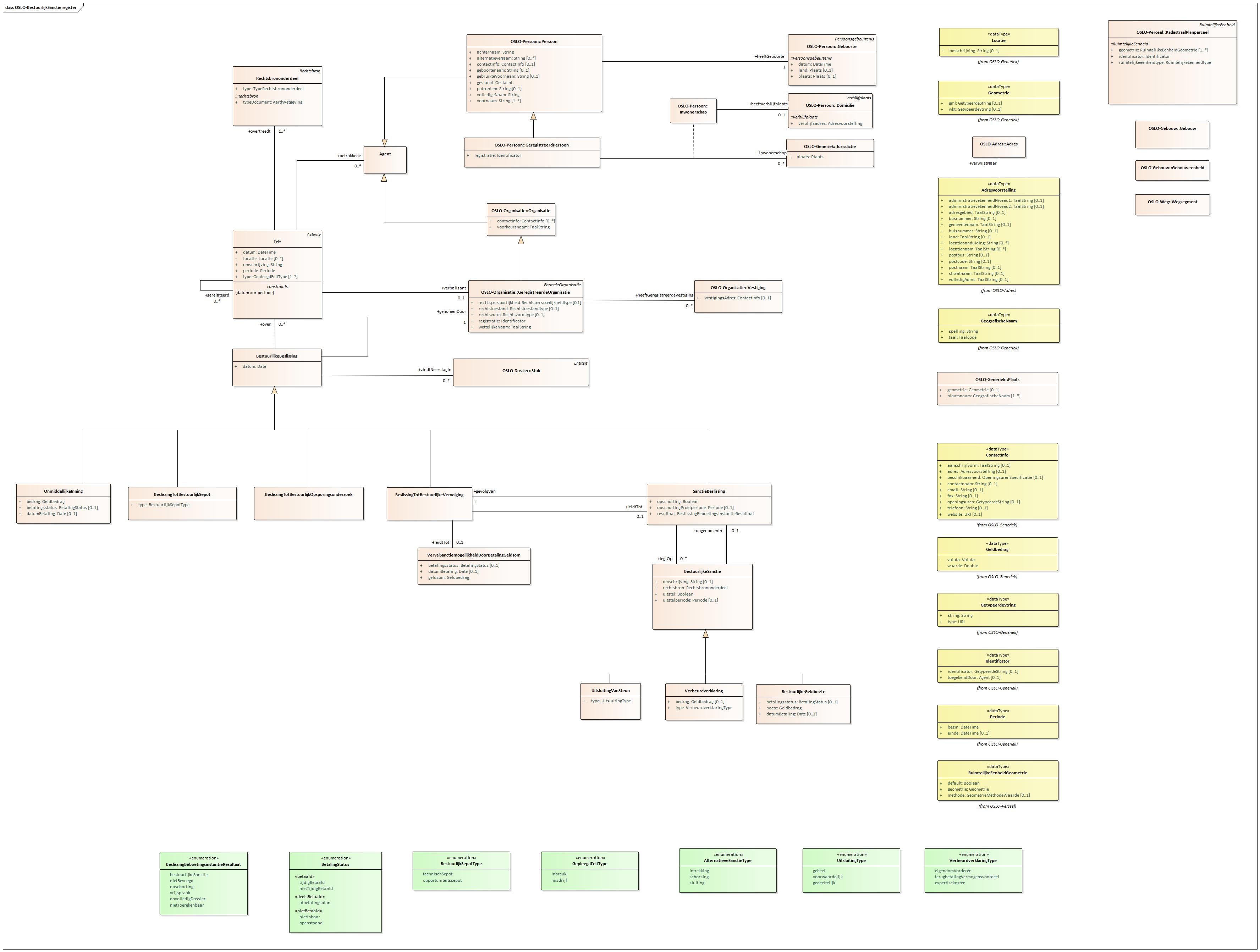 Vervolgens modelleren we de Beslissingen verder uit in meer detail. Het gaat hier over de OnmiddelijkeInning, BeslissingTotBestuurlijkSepot, BeslissingTotBestuurlijkOpsporingsonderzoek, BeslissingTotBestuurlijkeVervolging en SanctieBeslissing.